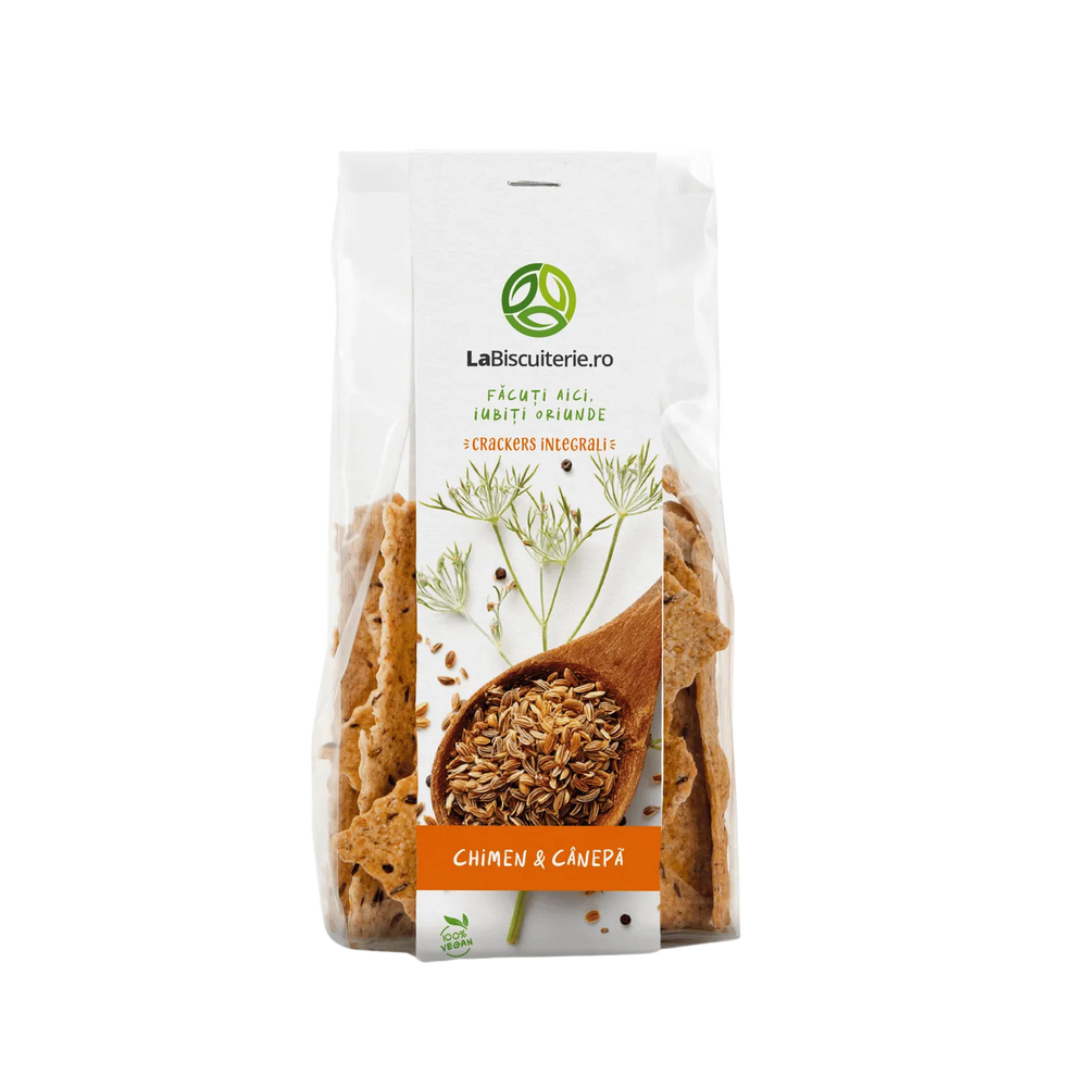 Combinaţia de chimen şi seminţe de cânepă oferă un gust profund şi complex, iar făina integrală asigură o textură crocantă perfectă. Este o gustare sănătoasă, plină de personalitate şi gust.